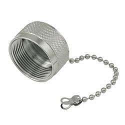 This sturdy metal dust cap protects your expensive 7/16 DIN Female coaxial interface when not connected to a mated interface. This cap features a metal retaining chain so that the caps can be securely attached to adjacent surface to prevent loss.