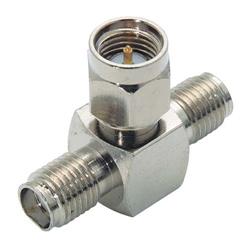 此款SMA3端口T型轉接器用于將普通源的信號傳輸到兩個不同設備。兩個SMA插座接口和一個SMA插頭接口的組合便于適合許多常見測試應用。