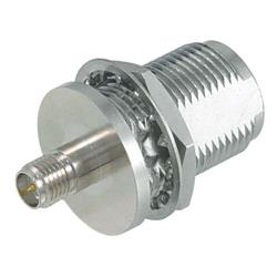 此款N型穿壁式母頭轉反極性SMA插座(RP-SMA)同軸線纜轉接器能夠將N型公頭接口與反極性SMA插頭接口相連。
