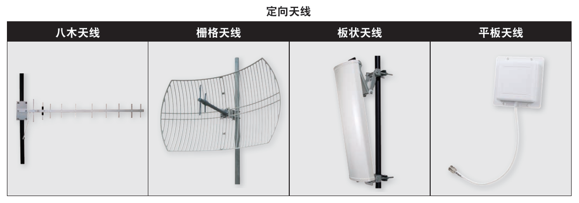 與輻射方向圖類似的是,車輛前照燈是如何照亮道路的。定向天線的類型包括八木天線、柵格拋物面天線、板狀天線和平板天線。