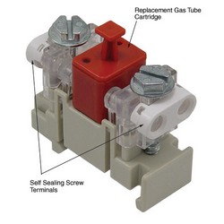 The AL-D0VW-2 is a dual fail safe 230V differential gas discharge tube suppression modules. This module features self-sealing screw terminals. The suppression modules and gas tub cartridges are internally flooded with dielectric grease resist moisture. This module is for use with the AL-D2VW Lightning Protector. 特征