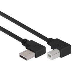直角型USB线缆,左出线A型公头/左出线B型公头,黑,2米